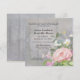 "Conjunto de convite de casamento com flor de margarida selvagem peônia rosa e madeira rústica cinza." Um fundo quente e desgastado de madeira de uma cerca ou celeiro de madeira é o cenário perfeito para redemoinhos, floreios e floreados vintage com folhagens, samambaias, folhas de eucalipto, ervilhas-de-cheiro, margaridas e uma gloriosa peônia rosa. Perfeito para casamentos em fazendas, celeiros, ao ar livre, casamentos rústicos refinados BOHO boêmios e qualquer evento elegante de verão. Direitos autorais de arte, artista licenciada internacionalmente Audrey Jeanne Roberts, todos os direitos reservados.