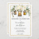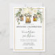 Esta design de casamento floral romântica e chica apresenta uma bela combinação de lanternas românticas e lanternas de corda d'água e lamparinas elegantes e rosas brancos e verde-tenda em um fundo branco com armações de ouro. A parte traseira da carta apresenta o site do casamento ou o link da mídia social. Fácil de personalizar com suas próprias informações de casamento, e a cor de fundo também é personalizável. Estas cartas são perfeitas para o casamento romântico do celeiro, casamento de fazenda, ou qualquer lugar rústico e romântico. Design de T.K. em frente. A coordenação dos artigos de casamento está disponível na minha coleção de casamento Elegante White Peonies e Rustic Dourada Lanterns na minha loja Zazzle: