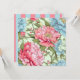 Ilustração romântica de peônias de Taiwan em rosa pastel, azul e verde menta