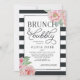 Chic e feminina em tons de rosa-pincel e escovado fora de preto, nosso chá de panela apresenta coloração d'água rosa e um fundo riscado ousado com "brunch and bubble" e seus detalhes do chá de panela no centro.