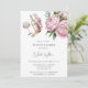 Uma ilustração detalhada da aquarela de um arranjo floral com grandes peônias cor-de-rosa contra um fundo branco. O arranjo é centrado e arranjado em um padrão circular com cinco peônias completamente floridas - três em rosa mole. Cada pénia tem delicadas pétalas em camadas com gradientes sutis e estames detalhados. As flores são acompanhadas por várias folhas verdes em diferentes tons - verde-escuro, verde-sábio e verde-claro-oliva. As folhas têm uma veia detalhada e estão dispostas dentro e ao redor das flores. Pequenos botões de flores cor-de-rosa e hastes verdes com folhas múltiplas estendem-se para cima em ambos os lados do arranjo, criando uma estrutura equilibrada. A ilustração tem um estilo suave e romântico com transições de cores suaves e detalhes botânicos precisos. Toda a composição é colocada sobre um fundo branco puro, dando-lhe uma aparência limpa e elegante.