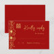 As pessoas simbolizam a felicidade, a prosperidade e um casamento longo e próspero.O nosso povo floresce moderno chinês vermelho Dourado Wedding RSVP apresenta belas ilustrações de pénia em ouro espantoso contra um vibrante fundo vermelho auspicioso, perfeito para casais que querem honrar a sua herança enquanto celebram o seu amor no estilo contemporâneo. O convite correspondente está disponível em: https://www.zazzle.com/peony_flowers_modern_chinese_red_gold_wedding_invitation-256969329920658667