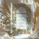 Set the tone for “the night before” with an elegant two-sided rehearsal dinner invitation inspired by classic Art Nouveau design. An ornate arched frame is filled with flowing botanical linework, all rendered in fine ink-style detail with soft watercolor shading. Creating a timeless look reminiscent of vintage poster art, decorative tilework, and turn-of-the-century illustration.