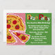 Pepperoni Pizza design que é uma fatia de diversão. Perfeito para uma criança ou festa de aniversário pré-adolescente. Com pizza de pepperoni, pimenta verde e azeitona. Texto personalizado para personalizar de qualquer maneira que você quiser. Imagem móvel do "Pizza Party". Nos convites, nos cartazes e nos autocolantes. PinkInkArt original!