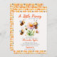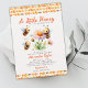 Apresentando nosso encantador convite para Chá "A Little Honey is On the Way", uma menina misturando sem problemas o tema da abelha de mel e o mote floral de flor silvestre. Este convite cria a atmosfera perfeita para dar boas-vindas a uma menina no primavera ou nos meses de verão. Uma ilustração de aquarela branca apresenta três "pequenas abelhas" carinhosas em uma flor selvagem. Formada por uma moldura de pentes alveolados em tons brilhantes e ousados de amarelo e laranja, esta design fornece um fundo encantador para a sua celebração.