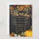 Lindo laranja enferrujado e escuro burgundy outono caem flores e bordas de abóbora com cordas de ouro brilhando sobre um fazer de fundo de madeira marrom-escura uma elegante abóbora no caminho convite de festas chá de fraldas com um roteiro de tipografia dourada. ++++++++ Fácil de personalizar com seus detalhes! Adequado para a tradicional corrida de outono | país | fazenda | Garoto ou menina do quintal exterior ou sexo revelam chá de fraldas.