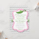 Ajude a celebrar uma futura mãe e uma pequena ervilha doce que está a caminho com este adorável convite para chás de fraldas. Possui uma ervilha em uma cápsula com quadro rosa e fundo cavalar da cinza.