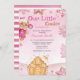 Nossa design apresenta uma gengibre bonita ao lado de uma casa de pão de gengibre com canas doces no telhado. Há também biscoitos bonitos nos lados. A casa é cercada por flocos de neve e canetas doces em um fundo rosa. Isto é perfeito para celebrar um chá de fraldas e dar as boas-vindas à sua menina na época de Natal.