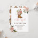 O Convite para Chá de fraldas "Little Cowgirl on the Way" é um produto projetado para anunciar e convidar convidados para uma celebração de chá de fraldas para uma menina que vai ser nascer. O convite apresenta um design estilo ocidental, com um bonitinho chapéu e botas de vaquinha. O convite normalmente inclui detalhes importantes como a data, a hora e a localização do chá de fraldas, bem como o nome da futura mãe e quaisquer outras informações pertinentes, como um registro de presentes ou um tema para a parte.