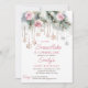 Pequeno floco de neve festa de aniversário de inverno convite para modelo de de água cor rosa pastel e pinças de cinza rosas cor-de-rosa pinceladas flocos de neve rosa de ouro com cristais menina adorável modelo convite instantâneo download digital para o inverno temido festa de aniversário inverno maravilha de inverno
