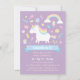 Tenha um aniversário doce e mágico para a aniversariante com uma festa de aniversário temática de unicórnio! Este convite colorido vem com um pequeno unicórnio branco giro, com mana cor pastel de vermelho, azul e amarelo. Vários elementos decorativos rodeiam o unicórnio, que inclui estrelas, algodão doce, flores, doces e pirulitos, folhas florais, corações, sorvete de picolé, cupcake e arco-íris! No verso do convite está um padrão de listras inclinadas com a mesma cor pastel. O fundo roxo pode ser alterado. Personalize com os detalhes do seu partido de dois dias, incluindo o texto na faixa!