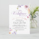 Como uma brisa suave através de um campo de primavera, este convite é enquadrado com delicadas flores silvestres de aquarela em pintas e púrpura macios. A design apresenta um toque de tipografia japonesa, adicionando um detalhe doce e culturalmente único que a faz sobressair. Perfeito por receber uma menina, ele captura a alegria de uma época florescente e o calor da celebração. Imagine seus convidados sorrindo enquanto eles abrem um convite que se sinta elegante e pessoal! Com amor da minha mesa cheia de flores no Japão, Junko 🌸