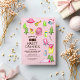 Jogue a festa de aniversário temática One Happy Camper perfeita para sua garotinha. Estes convites apresentam ilustrações de aquarelas de várias engrenagens de acampamento e acessórios colocados sobre um fundo rosa bonito e prontos para serem personalizados com os detalhes de sua festa.