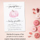 Uma menina bonita, alegre e esperta, fez um convite para o chá com "A Sweet Little Pumpkin Is On Her Way" escrito em uma mistura de tipografia moderna de cinzas moles e roteiro de na moda, e uma aquarela pastel rosa de uma abóbora. Por baixo, "bebê aspersor" está escrito no mesmo roteiro de na moda e você pode personalizar facilmente o nome da mãe e os detalhes do chá em uma tipografia moderna mínima.
