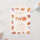 O convite de aniversário para crianças bonitas e divertidas, "a abóbora está virando dois", que apresenta a cor d'água, folhas de folhagem e design de abóbora.