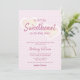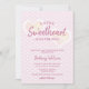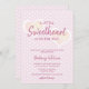 Esta design apresenta um Namorados que ama um convite de chá de fraldas de menina com tema cardíaco, com padrão cardíaco cor-de-rosa pastel e um texto elegante "A Little Sweetheart está a caminho"