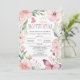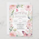 Pequena Miss Butterfliy Pink primeiro aniversario Floral Convite com florais cor-de-rosa suave, organizado lindamente ao redor das bordas de um fundo branco