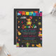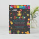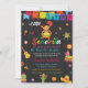 Esta Pequena Senhorita No Way Girl Fiesta Chá de fraldas Invitation mostra: Um fundo festivo de quadro-pessoal com uma garota bonita dançando de vestido colorido. Há maracas, uma guitarra, um cacto, uma piñata e outras decorações festivas. O fundo é preto com um efeito de quadro-negro texturizado. As cores são brilhantes e vibrantes. O estilo é cartoonista e caprichoso. Se você quiser personalizar qualquer produto ou transferir o design para qualquer outro produto, entre em contato com o designer.