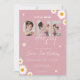 Celebre o primeiro aniversário da sua menina com este adorável convite da "Pequena Miss Maravilha", com um fundo rosa suave, um roteiro branco elegante. Bonitos sotaques de margarida adicionam um toque fresco e caprichoso. Personalize-o com três fotos especiais dispostas na forma da palavra UM e personalize facilmente o nome e os detalhes do evento no texto editável. Perfeito para uma celebração de primeiro aniversário feminina, floral e verdadeiramente memorável!