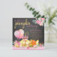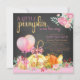 As meninas fazem convites para bebês de abóbora com bonito abóboras cor-de-rosa, laranja e douradas e balões sobre fundo cor-de-rosa com texto rosa e dourado. Você pode personalizar facilmente este adorável convite de chá de fraldas de abóbora de quadro chalkboard para o seu evento simplesmente adicionando seus detalhes. Este é um design impresso sem folha de alumínio, arcos, etc.