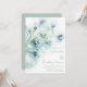 Aniversário Qualquer Convite à Idade com pequenas flores brancas. As flores abstrato desenhadas à mão num fundo verde azul. Pintura floral de aquarela de Ornamentado mole. Abstrato natural com ramos florais ciganos. Vintage lindos galhos florais, flores elegantes, primavera ou design floral de verão, buquê romântico. Um enredo botânico. Delicar botânica de flores Aniversário Qualquer Convite Idade. Coleção de Flores Brancas Pequenas.