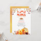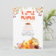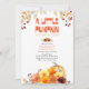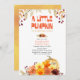 Um Pequeno Pumpkin está virando a idade - perfeito para o outono, estação de abóbora e ação de graças. Design de aquarelas com folhas de outono, flores e abóbora em cores vivas. O convite apresenta uma tipografia peculiar e uma lavagem com aquarela nas costas.