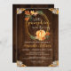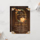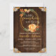 Um pouco de abóbora está a caminho, então comemore com este convite de chá de fraldas inspirado no outono. Este cartão contém a palavra abóbora em dourado falso, fundo de madeira rústica e arranjos de folha de outono. A abóbora aquarela fica no fundo da coroa.