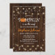Chamadas de bebê em queda russa, com fundo de madeira, luzes cintilantes, uma abóbora de halloween e um modelo de texto moderno que é fácil de personalizar.