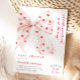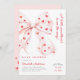 Convite de chá de fraldas elegante e adorável, com uma fita rosa macia adornada com corações vermelhos, colocada contra um fundo branco nítido. Perfeito por celebrar uma futura mãe especial! Totalmente personalizável com seus detalhes de evento, incluindo nome, data, hora, local, informações de RSVP e muito mais.