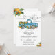 Celebre a chegada de um pequeno querido com este encantador convite de chá de bebê, apresentando um vintage caminhão azul cheio de laranjas e folhagens. O tema alegre de citrinos adiciona um toque lúdico, perfeito para celebrações de verão ou encontros rústicos. Personalize com os detalhes do seu evento para criar um souvenir único que os convidados vão adorar. Projetado para os futuros pais, este convite combina estilo caprichoso com elegância moderna, tornando-o ideal para chás de bebê com um tema doce e vibrante.