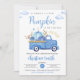 Bonito Pequeno Pumpkin Blue Rustic Truck Baby Boy Invitation.