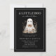 Pequeno Arco Fantasma Bo-Cute Flores Selvagens Casais Chá Convite - com um fantasma adorável vestindo um arco de coquete laranja. O fantasma está rodeado de flores silvestres. Um código QR para o Registro do Bebê está no verso do convite. O convite é clássico com um toque de beleza. Perfeito para o Chá de fraldas do seu bico.