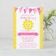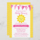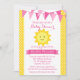Um belo convite para chá de fraldas de menina. Design apresenta cores alegres de amarelo e rosa.