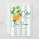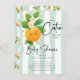 Celebre a chegada do seu pequeno com nosso charmoso convite para chás de fraldas, com uma adorável laranja enfeitiçada com folhas verdes vibrantes e pequenas flores delicadas. Colocado contra um fundo verde de faixa de tendência, este convite captura perfeitamente a alegria e entusiasmo de acolher uma nova gravata no mundo. Seu design divertido é certamente encantador para seus convidados e dá o tom para uma celebração memorável. Torne seu chá de fraldas inesquecível com este belo convite que incorpora a doçura e o estilo.