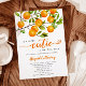 Cartões de convite para chás de fraldas, de gênero neutro, com tema pequeno e russo, com ilustração da fruta dos citros em um galho de árvore. Perfeito para um chá no verão.