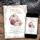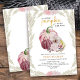 Chamada de abóbora e chá de fraldas de grama de pampas, escrita com "uma abóbora está a caminho". Design de aquarela com uma borda de erva-pampas e flores cor-de-rosa, com abóboras, figo, pera, flor, erva seca e eucalipto. O modelo do convite está pronto para você personalizar. Para estilos de alternativo e itens correspondentes, navegue na minha loja - Pequena coleção de Abóbora.