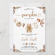Celebre a mãe por estar com este doce e acolhedor Convite para Chá de fraldas de Abóbora de Abóbora. florais, abóboras de aquarela e roupas de bebês em uma linha de roupa pendurada estabelecem o tom para um chá temático no outono. Personalize instantaneamente e chá sua abóbora no estilo.