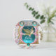 Pergaminho antigo medieval elegante, com pedras coloridas de gema, pérolas brancas, arco cor-de-rosa e animais.design floral com um bebê, estilo de vintage engraçado, e cegonha voadora entre o belo rosa, ouro, rosas vermelhas, flores de primavera e folhas verdes, de Búlgaro Lumini (c).
