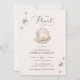 Celebre a chegada do seu pequeno com este tema de Chá de fraldas da Garota de Seashell de Pearl Ocean Beach! Apresentando designs náuticas em rosa e ouro, tons beges suaves e ilustrações encantadoras de ostras aquáticas e de conchas, este convite estabelece uma costa e sob o mar é perfeito para uma celebração de verão. O design bonitinho e caprichoso é ideal para um chá de fraldas de praia!