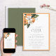 Crie o anúncio perfeito do bebê + convite para o chá de fraldas com este design moderno tema clementina, com elementos florais e cítricos pintados à mão e caligrafia moderna da escrita. Entre em contato com o designer para produtos correspondentes. Copyright Anastasia Surridge for Elegant Invites, todos os direitos reservados.