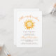 Este belo convite para o chá de fraldas apresenta uma ilustração aquosa de um sol com um rosto sorridente. Acima de tudo, as palavras "um pequeno raio de sol" aparecem no guião tradicional laranja. Personalize o texto com o nome da futura mãe no roteiro laranja e os detalhes na fonte serif marrom. O verso oferece espaço para fralda, livros para bebê e detalhes do registro, juntamente com um conveniente código QR que os convidados podem digitalizar para visitar o registro. Ideal para o chá de fraldas de um menino ou de uma menina.