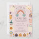 Celebre sua chegada com um convite divertido e festivo para o chá de fraldas de Halloween. Apresentando um fantasma ranzinza, abóbora, arco-íris, doce de Halloween, e design de cogumelo, este convite define o tom perfeito para uma celebração assustadora mas adorável.