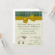 Um convite de chá de fraldas personalizado de cordeiro bonito, feito usando uma xadrez tradicional de corrie, na borda superior, com uma fita e um arco amarelo de ouro. Os gráficos de um carneiro pintado com o dedo do pé estão no lado esquerdo inferior. O texto é totalmente personalizável para o evento que está por vir. Os envelopes correspondentes estão disponíveis.