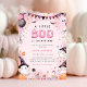 Jogue o chá de fraldas de Halloween mais bonito com este "A Little Boo Is On Her Way" Convite Fantasma, projetado para a doce chegada da sua menina! Encantada com charme, este convite cor-de-água rosa apresenta adoráveis meninas fantasmas em chapéus de bruxa, abóboras felizes, balões flutuantes, estrelas cintilantes e doces festivos — tudo o que você precisa para uma celebração deliciosamente assustadora. Perfeito para um chá de outubro com uma reviravolta feminina, este convite é fácil de personalizar e certamente encantar seus convidados!