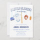 Pequena Tomada De Beisebol, Chamas De Bebê De Aquarela. Celebre seu pacote de alegria em um chá de fraldas temático de beisebol! Estes adoráveis convites de aquarela apresentam uma bola de beisebol, capacete, luva com bola, e cachorro quente pendurado num móvel para bebês. Perfeito para qualquer fã desportivo que chegue. O verso da placa mostra um encantador padrão de linha de camisa listrada em azul.