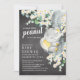 Adorável convite para Chás de fraldas de amendoim com o mais doce elefante bebê dormindo no porta-malas de mãe com folhas de eucalipto e flores de margarida amarelas e brancas colocadas sobre um fundo de quadro de tendências com um retorno correspondente para um toque especial extra. Visite o nosso compro para ver este convite para chás de fraldas de meninas ou rapazes.