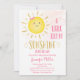 Este chá de fraldas bonito apresenta um sol doce com fundo de aquarela cor-de-rosa e uma falsa inscrição em folha de ouro.