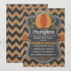 Rustic e chic, este convite para chás de fraldas de abóbora é adorável, não acha? Possui textura de canvas de burlap com fundo de abóbora e fevron.