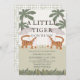 Este convite para chás de fraldas chique, de chinoiserie, apresenta um par de tigres rasgados e estampas de pata com guarda-chuvas, folhas tropicais e palmeiras numa selva, em verde-claro-sábio e um fundo branco-creme. O verso apresenta um fundo verde-claro com padrões geométricos. Personalize-o para as suas necessidades. Você pode encontrar produtos correspondentes na minha loja.