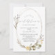 Este elegante e chico "um pouco de flor silvestre está a caminho" convite para chás de fraldas virtuais/zoom/facebook/online para meninas apresenta um fundo branco com uma moldura oval desenhada à mão em dourado falso/falso cercado por flores e folhas prensadas. O verso apresenta um fundo verde claro com padrões florais. Altere a cor de fundo e personalize para suas necessidades. Você pode encontrar mais produtos correspondentes na minha loja.